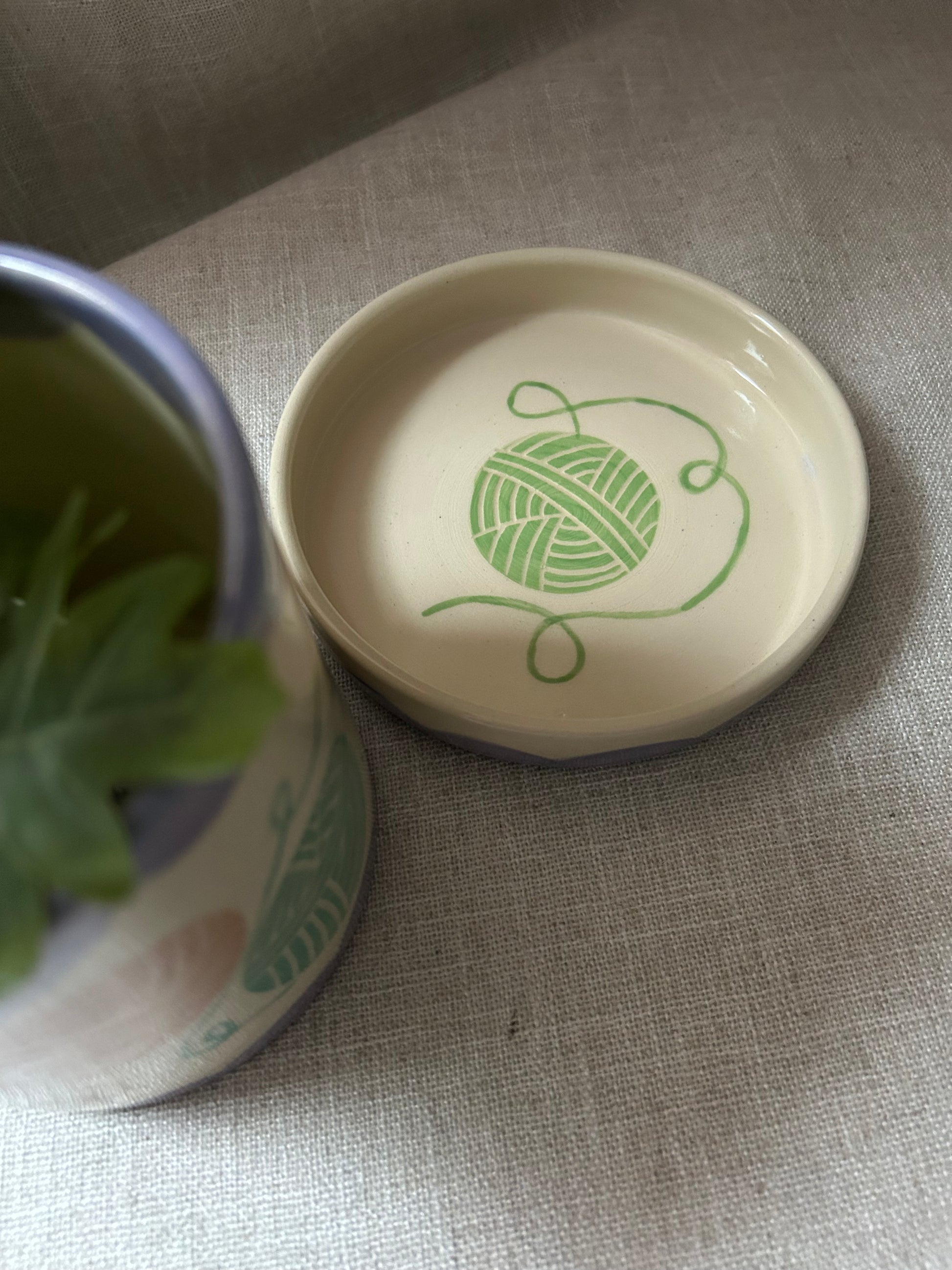 Hand thrown planter and dish with hand painted details.