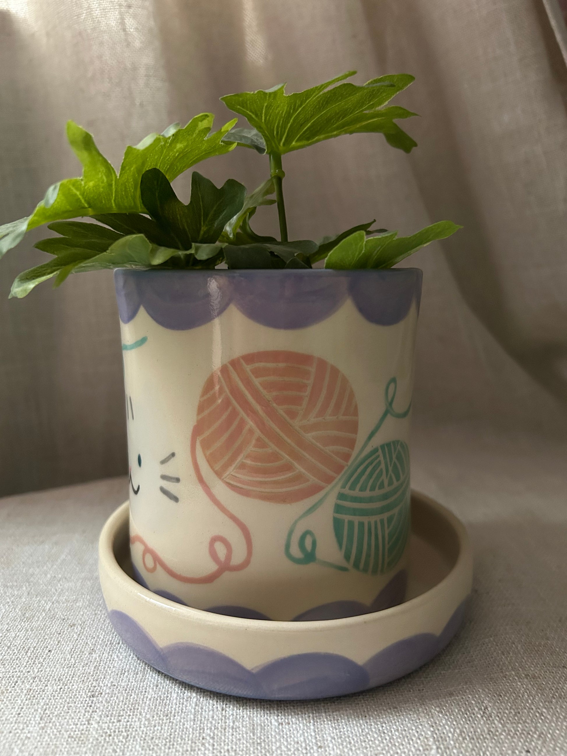 The purrfect vessel for your plants! Comes with a coordinating drainage dish.