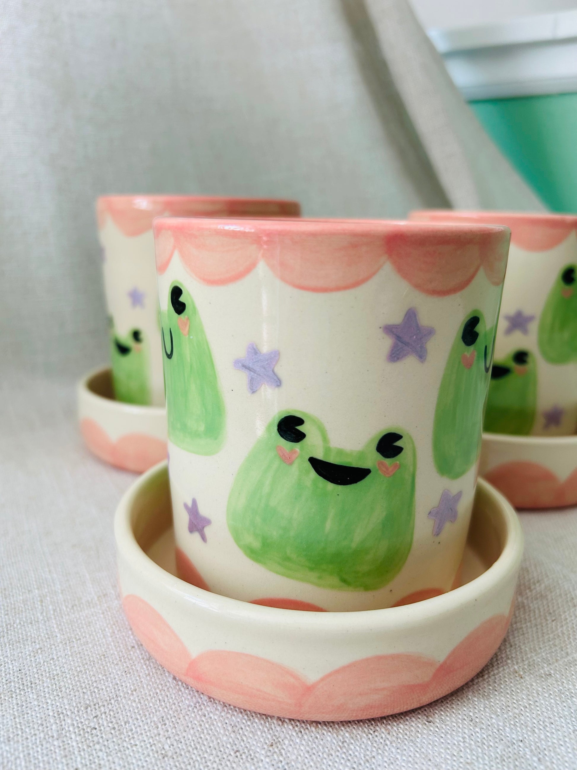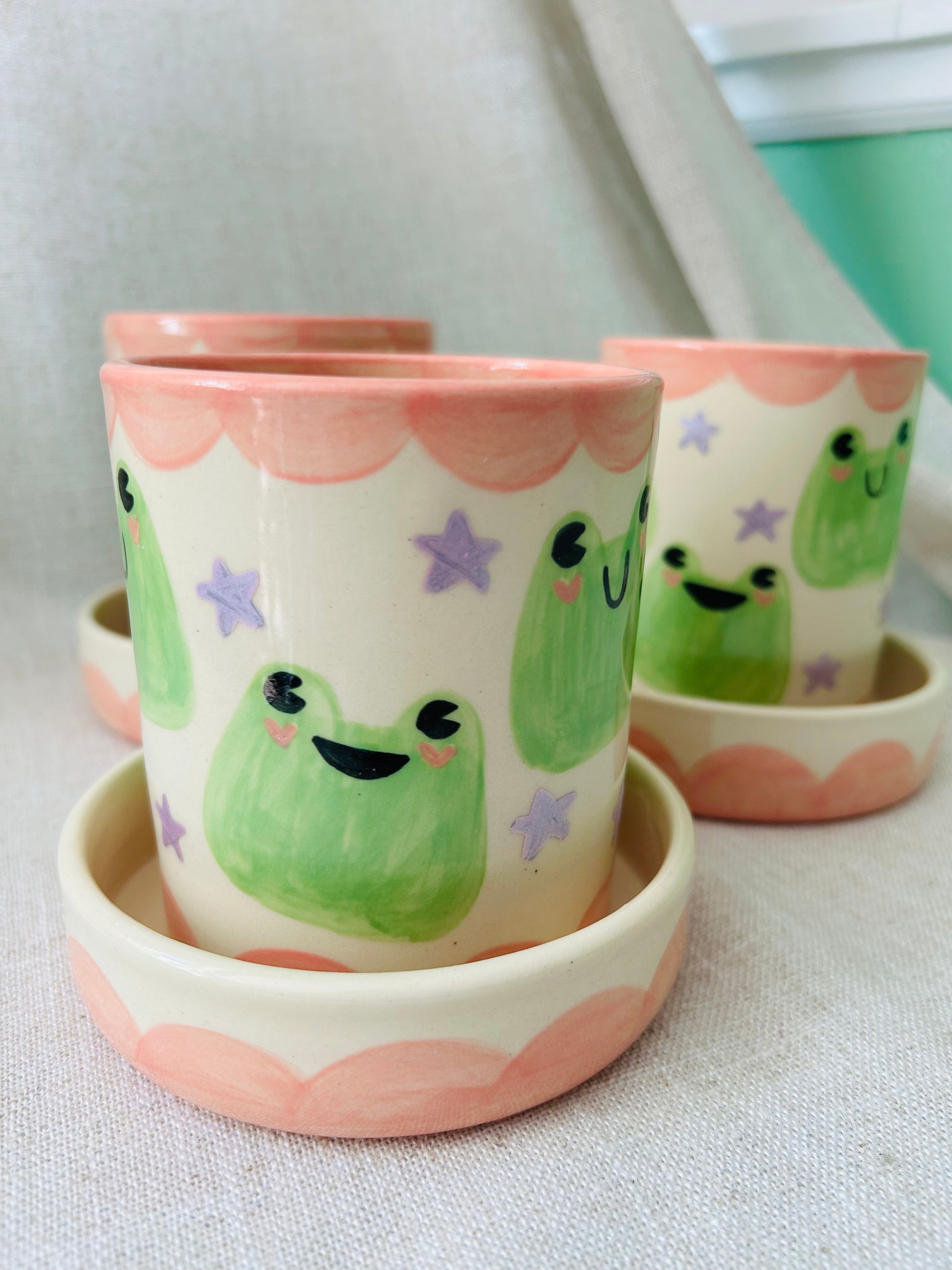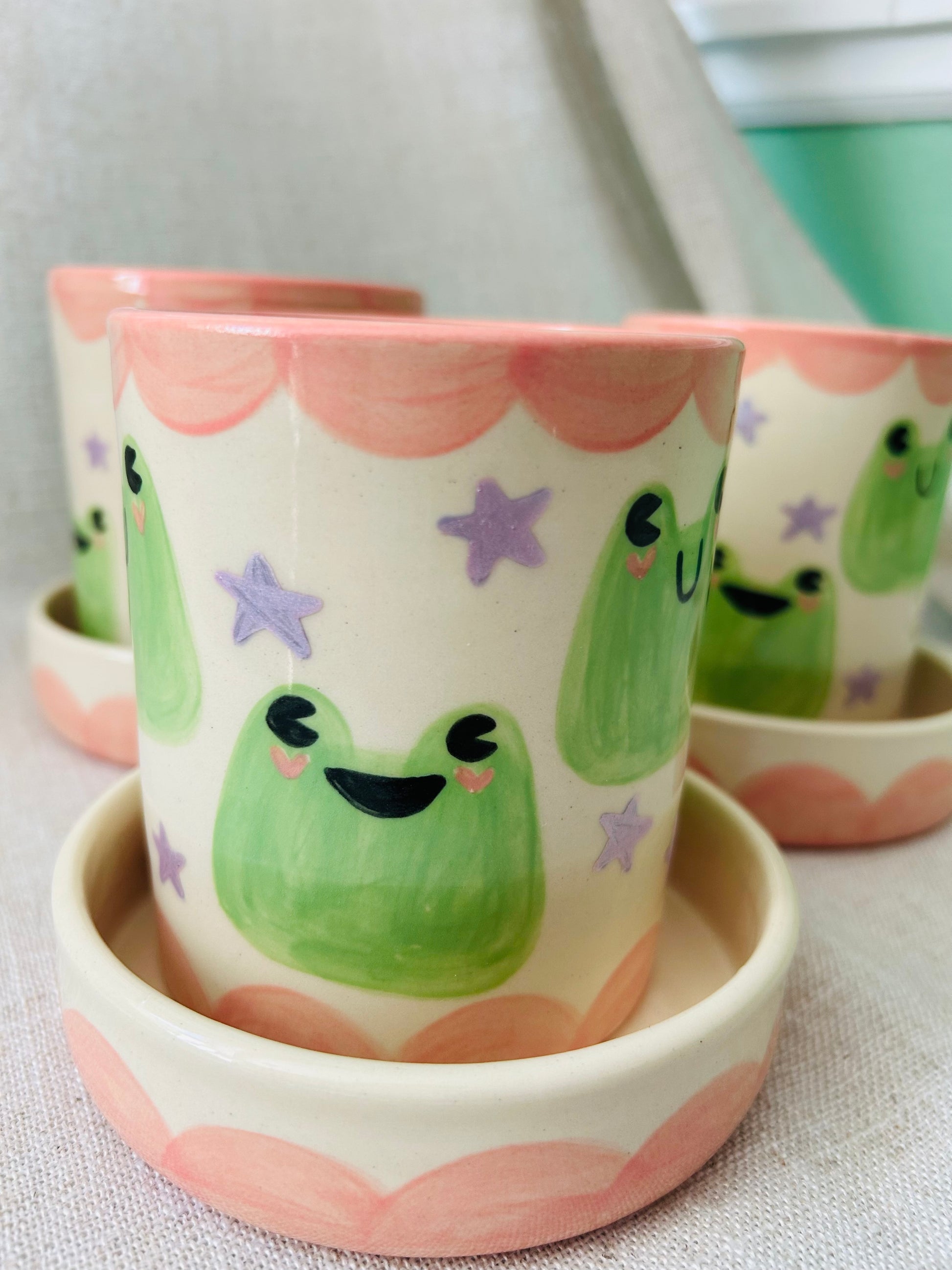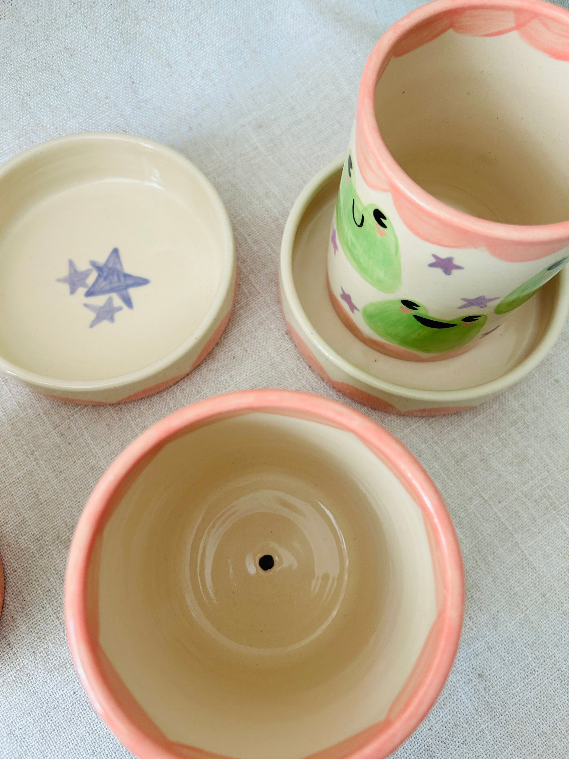 Hand thrown planter and dish with hand painted details.