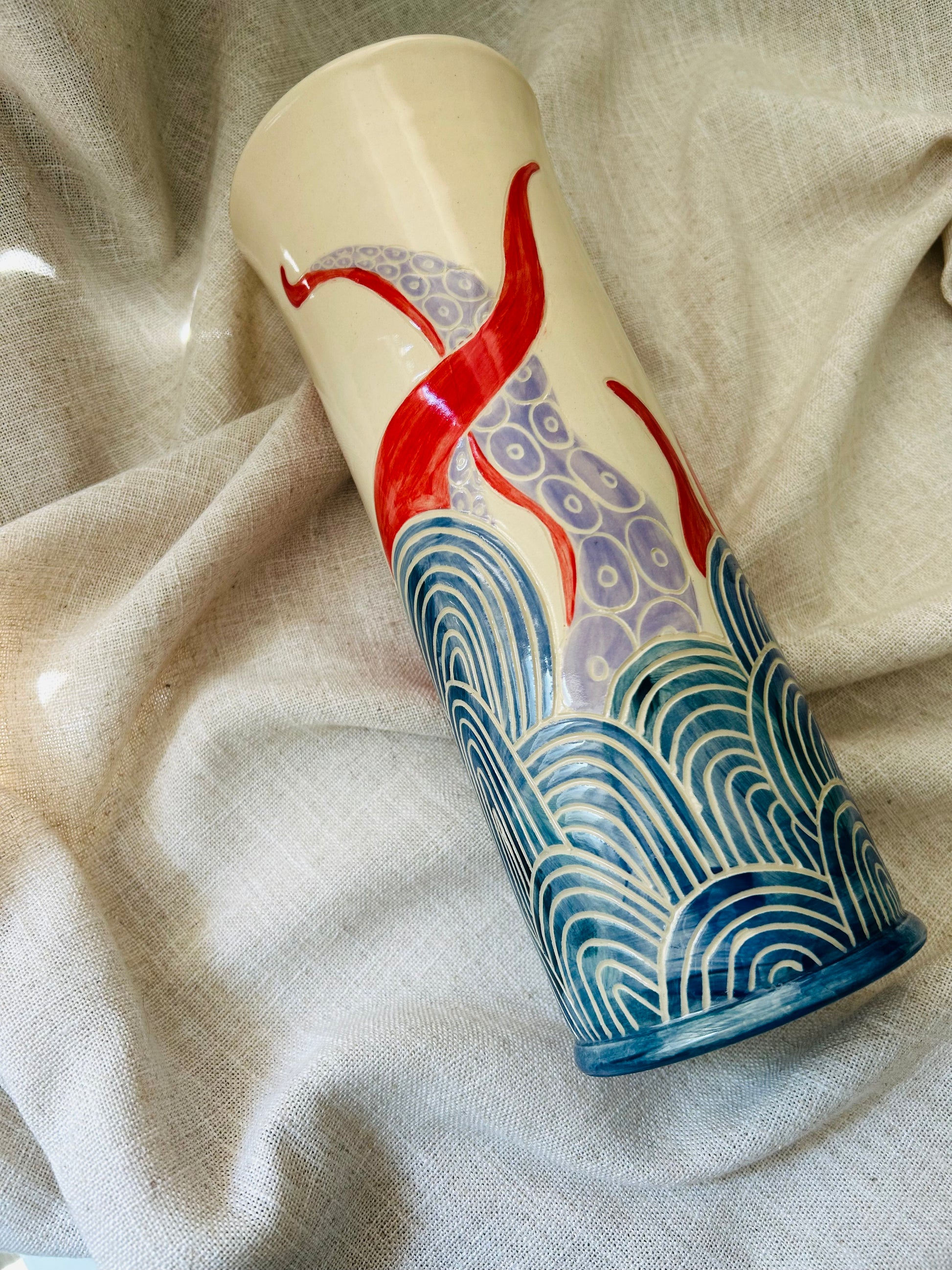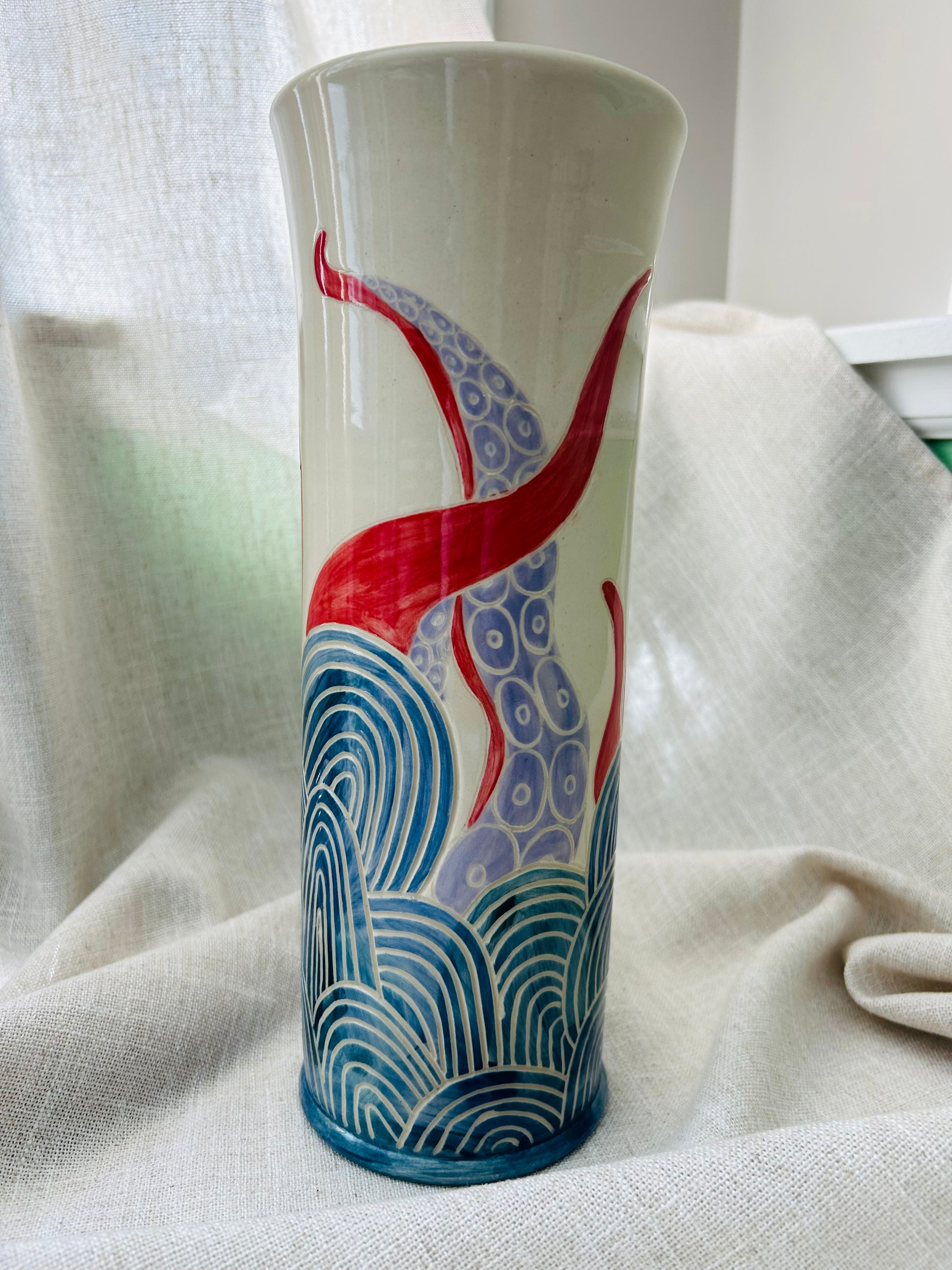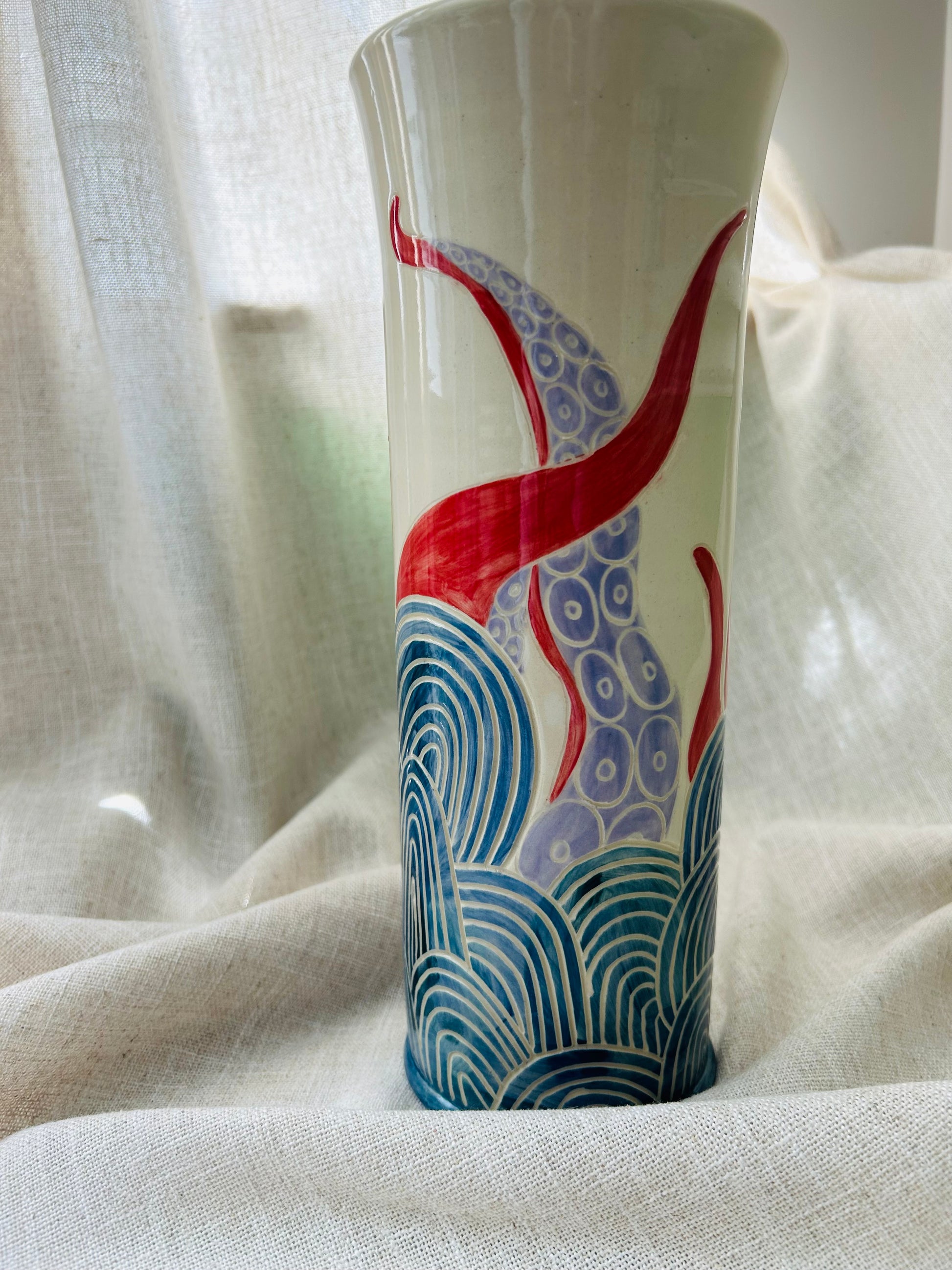 Tentacles reaching out from the watery depths to grab your blooms. This vase is long and will hold tall stems easily.