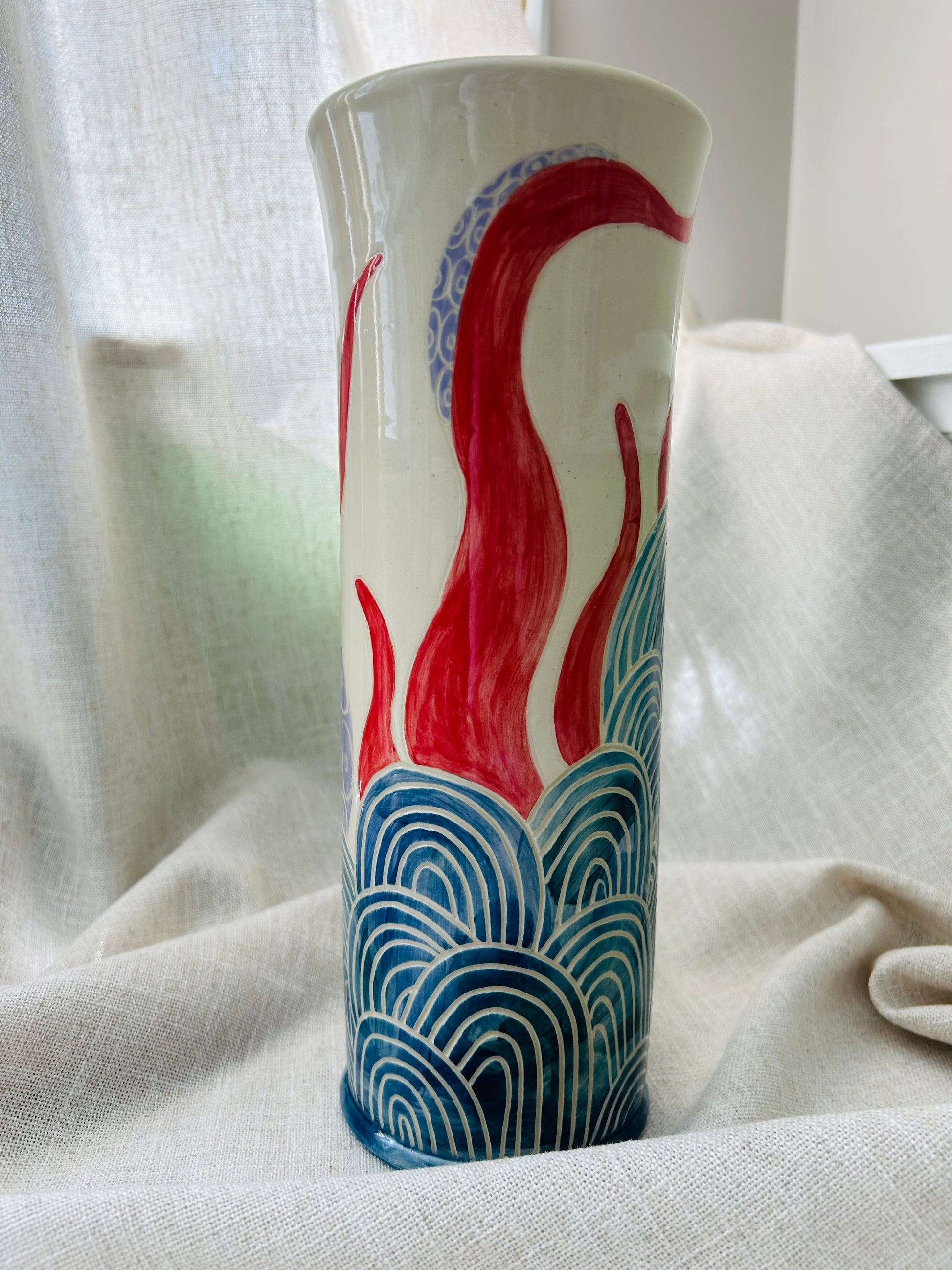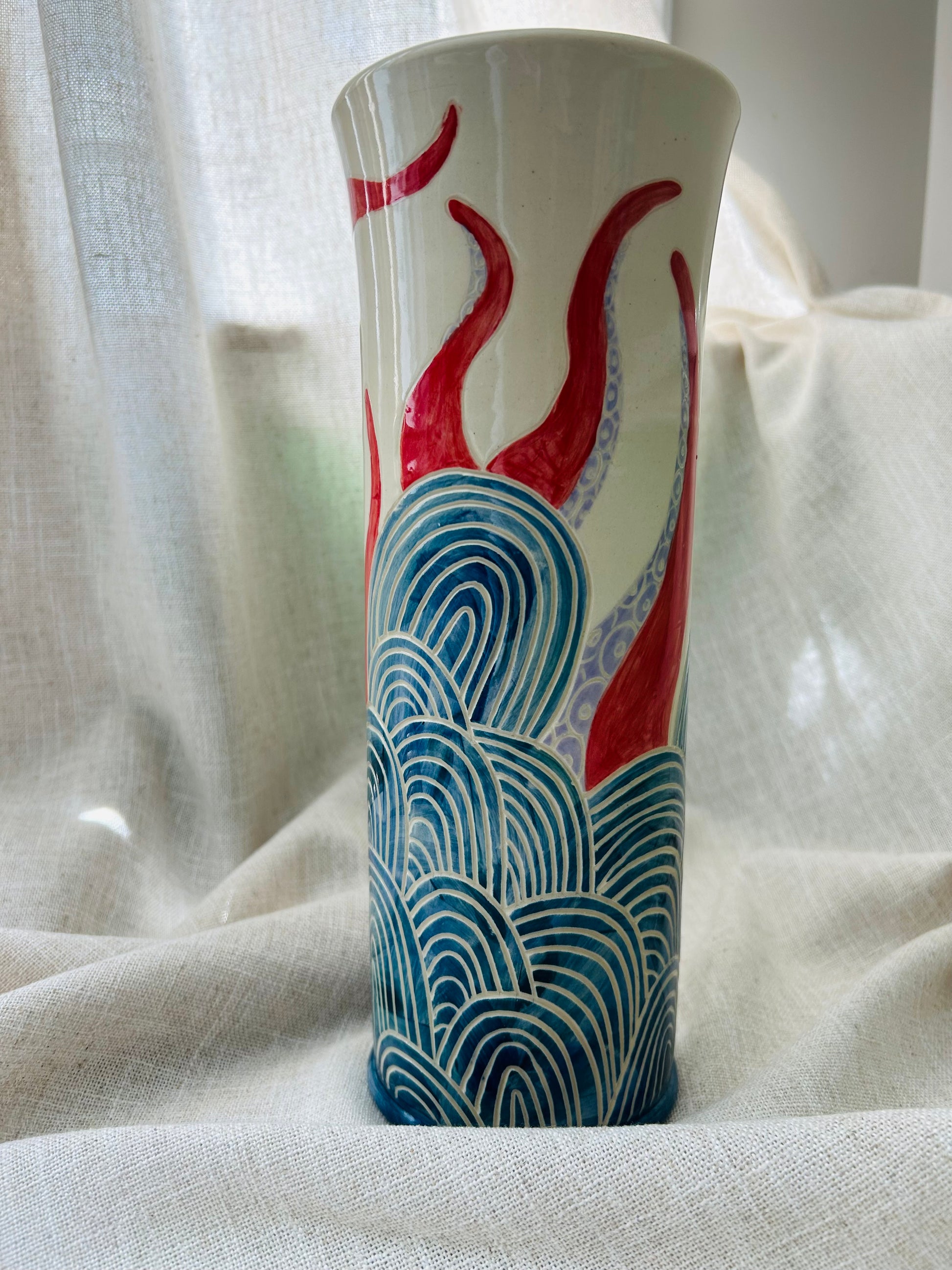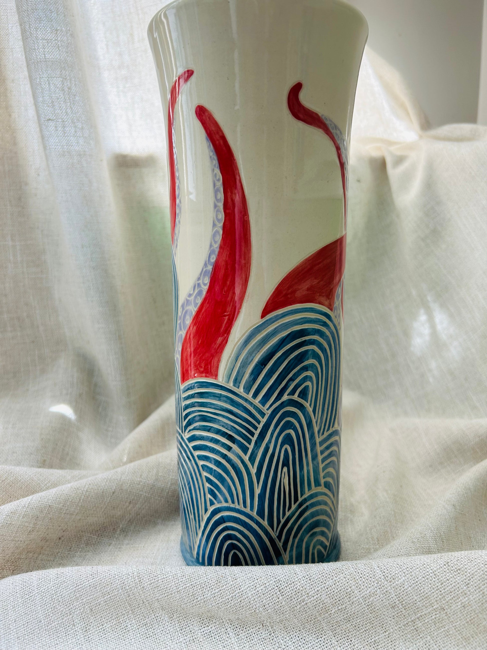 Tentacles reaching out from the watery depths to grab your blooms. This vase is long and will hold tall stems easily.